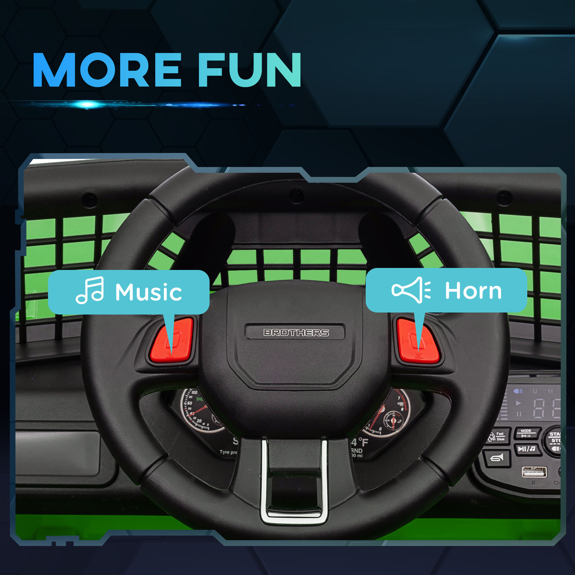 12V Battery Powered Kids Ride-On Car, Electric Truck W/ Spring Suspension, Remote, Music, Horn, Lights, Green